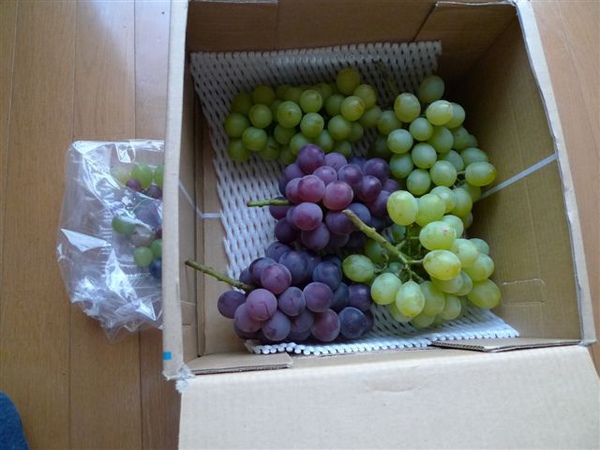 由左到右是(左)屁股有裂開的桃太郎葡萄、連皮可以吃