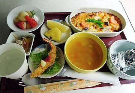 生完小孩之後護士送來晚餐,